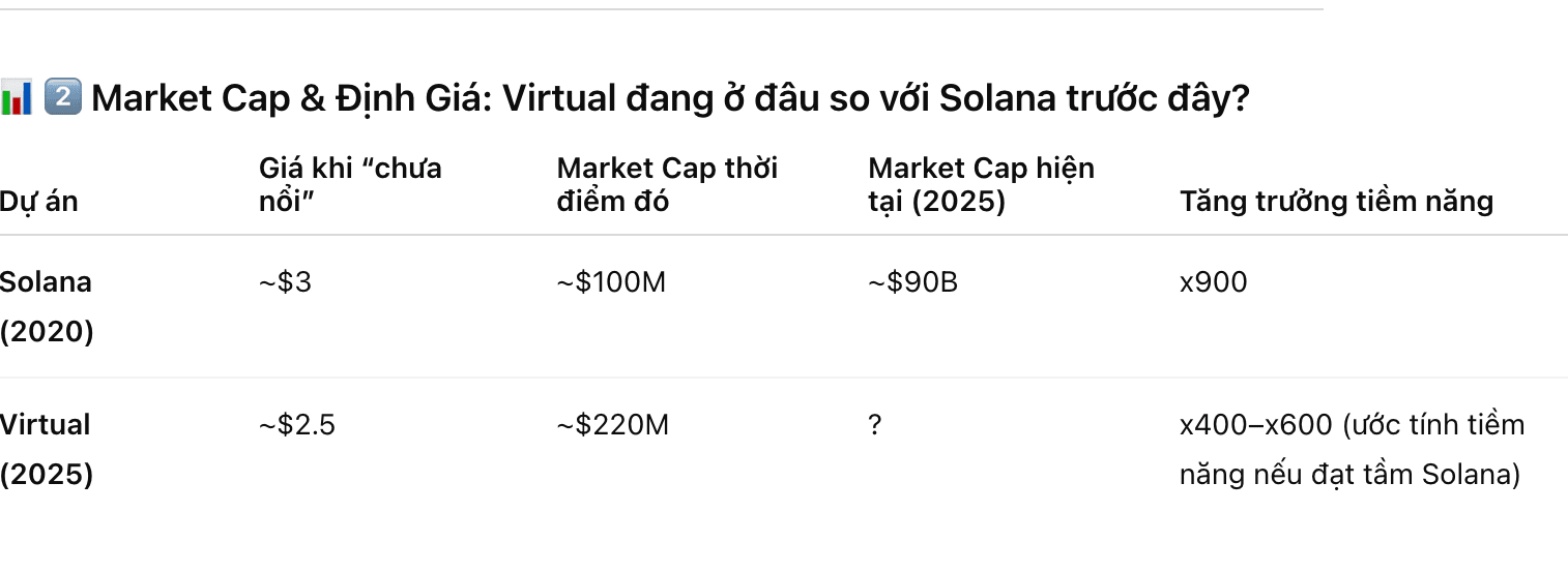 💡 Pokud Virtual dosáhne pouze 1/10 aktuální tržní kapitalizace Solany, teoretická cena již vzrostla x90–x100 krát.
