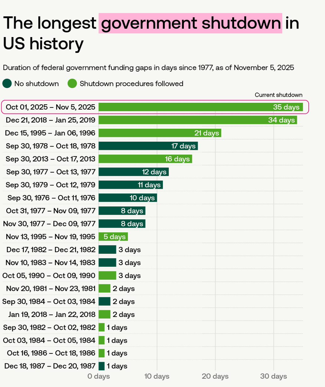 Délka je důležitá: Krátký shutdown může stále vyvolat vlny, ale prodloužený může poškodit ekonomický růst, důvěru investorů a podnikatelů a veřejnou důvěru.