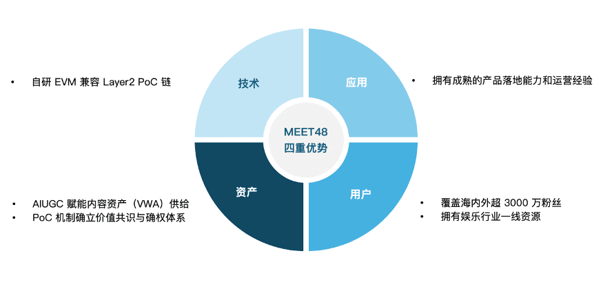 Meet48 vznikla z renomovaného týmu SNH48 s silnými zábavními geny a hlubokým know-how v oboru, dokonale integruje „idolskou ekonomiku“, která má v odvětví zábavy největší emocionální spojení, s AI + Web3 a stala se vzorovým projektem Web3 zábavy a postupně se stává infrastrukturou pro další generaci zábavy Web3.
