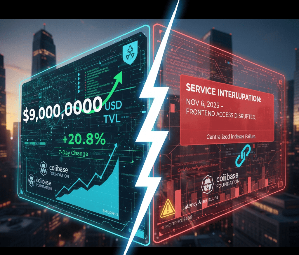 Dne 6. listopadu Morpho zažil částečné přerušení služby, které narušilo přístup k řízení zajištění a funkcím půjčování. I když základní funkce půjčování a půjčování zůstaly funkční, uživatelé nemohli zobrazit zajištění nebo spravovat pozice. Tým rychle obnovil backendové systémy, ale problémy s renderováním přetrvávaly, což znamenalo čtvrtou událost "degradovaného" stavu v týdnu. Tento incident zdůrazňuje závislost na centralizovaných indexerech, což může být v rozporu s decentralizovanou etikou DeFi. Přetrvávající problémy s latencí mohou podkopat důvěru uživatelů, zvláště během volatilních trhů, kde jsou včasné akce kritické.