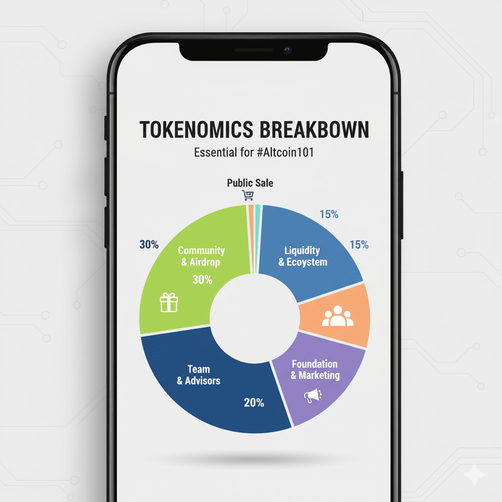 [Image of: Obrázek ilustrující kruhový diagram Tokenomics s rozdělením na části jako tým, marketing, airdrop, likvidita pro živější článek]