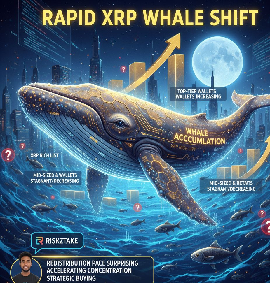 Seznam bohatých XRP ($XRP ) zažil v posledních týdnech rychlé změny, což značí jedno z nejvýznamnějších posunů v chování velryb v nedávné paměti. Sledovatelé trhu, kteří pečlivě sledují aktivitu velkých držitelů na XRP Ledgeru, uvádějí, že tempo redistribuce je překvapující i pro zkušené analytiky.