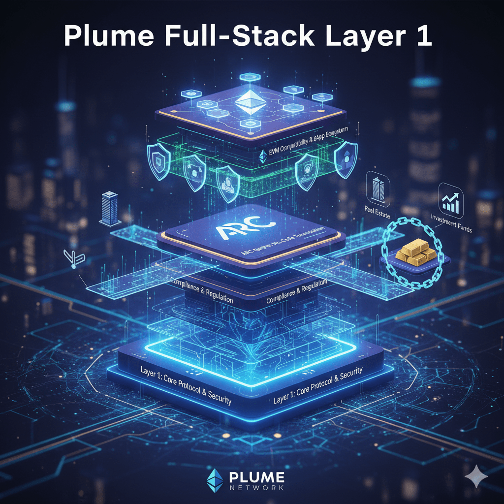 Full-stack L1 znamená, že Plume se stará o vše od základního konsensuálního mechanismu po bezpečnost a shodu specifickou pro aktiva, což zajišťuje bezpečné a shodné