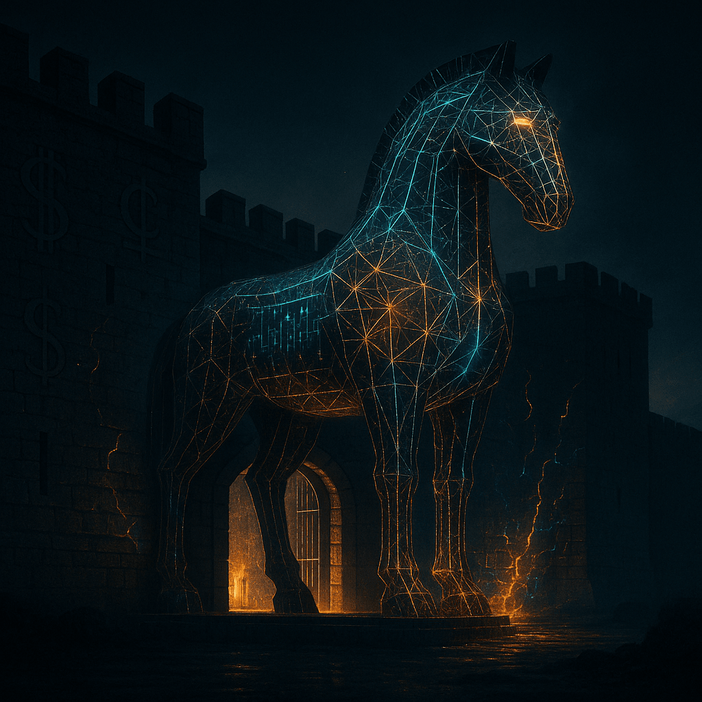 Trojan Horse není trik. Je to přirozený proces: povrchní systém přijímá hlubší a objevuje, příliš pozdě, že adopce není jednostranný akt.