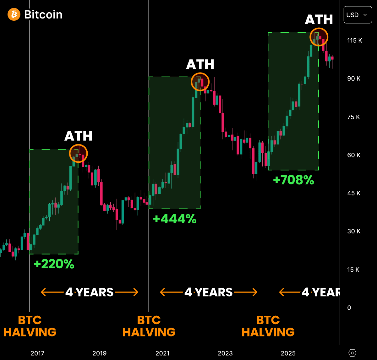 Každá z těchto událostí historicky posunula Bitcoin výše během 3–6 měsíců.