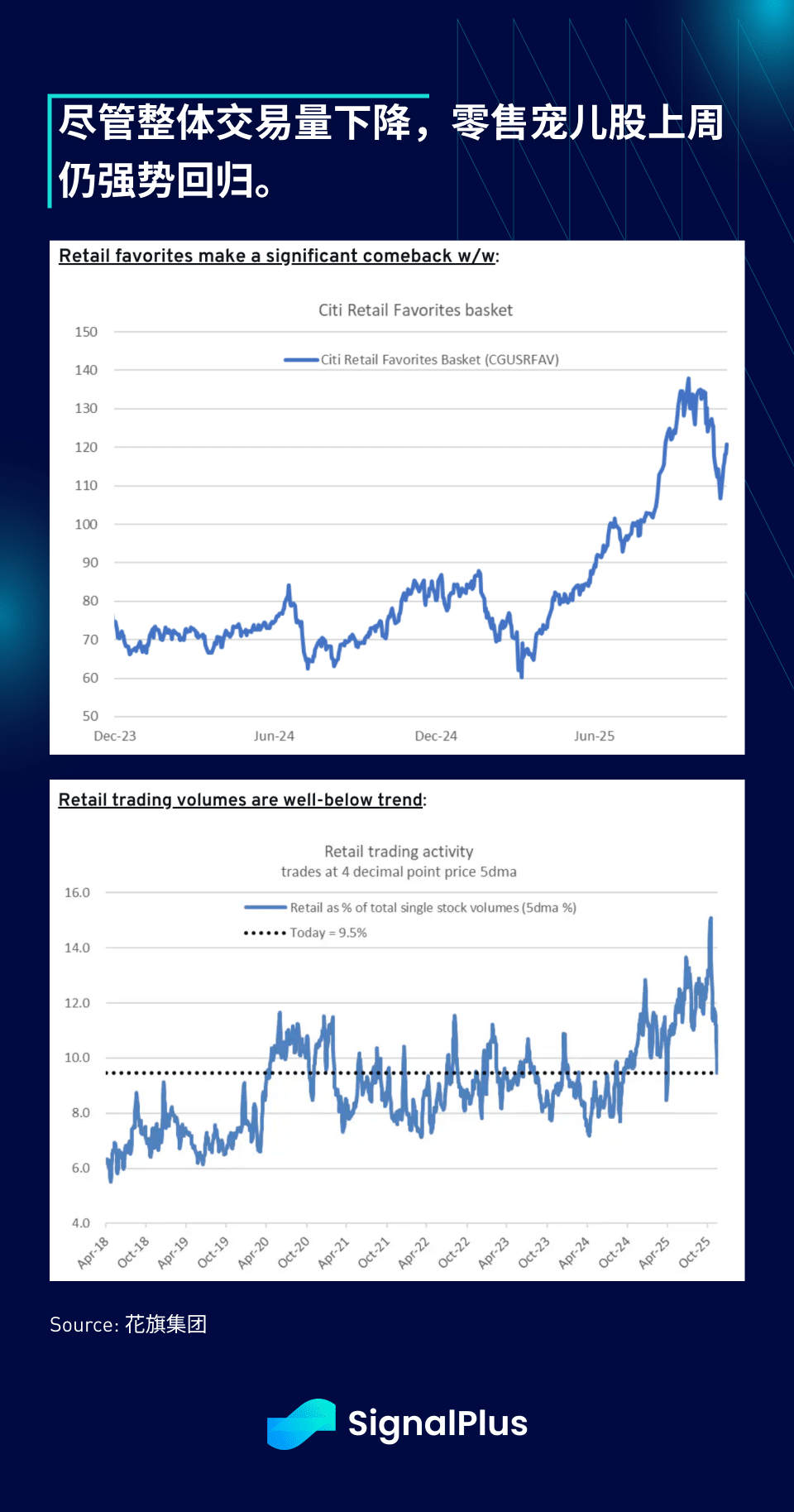 Pokud jde o akciový trh, index S&P 500 minulý týden vzrostl o 3,7 %, přičemž vedly sektory polovodičů (+5,4 %) a maloobchodu (+4,7 %), akcie miláčků maloobchodu, ačkoli celkový objem maloobchodních transakcí poklesl, přesto zaznamenaly silný týdenní odraz.