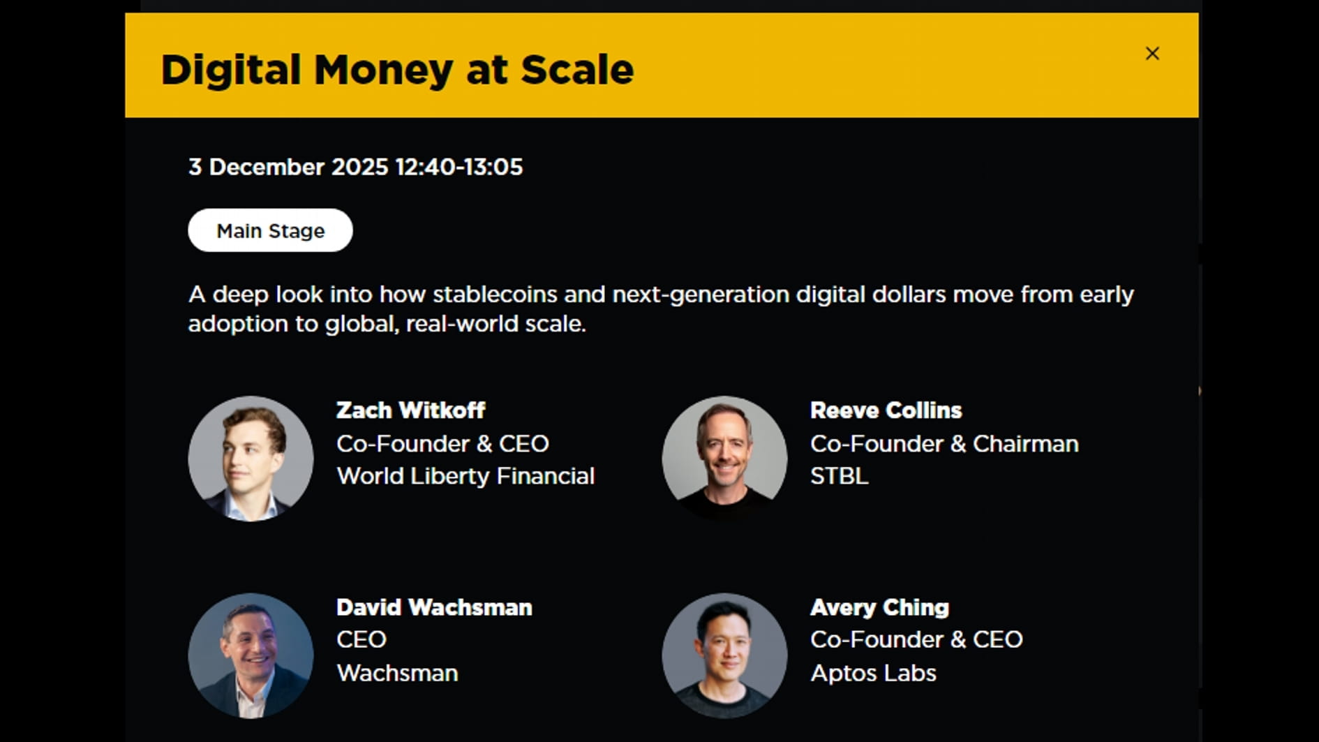 Nakonec, i když si nedokážete všechny seance poslechnout, zkuste si sledovat „Digitální peníze v měřítku“, která běží dnes (3. prosince) od 12:40 do 13:05 UTC. Nabízí skvělý pohled na to, jak stabilní měny a digitální doly nové generace přecházejí z počátečního využití k globálnímu využití.