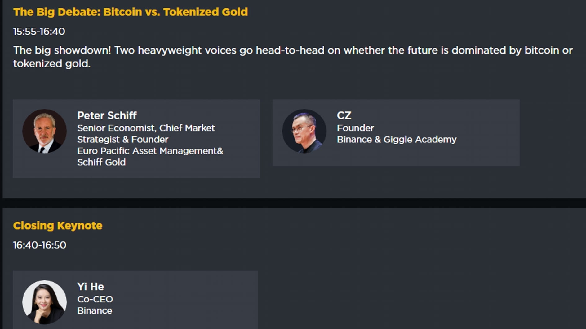 A nezapomeňte sledovat i dnešní (4. prosince) klíčovou seanci: 15:55 (UTC+4) – Velká debata: Bitcoin proti tokenizovanému zlatu s účastí CZ a Petra Schiffa.