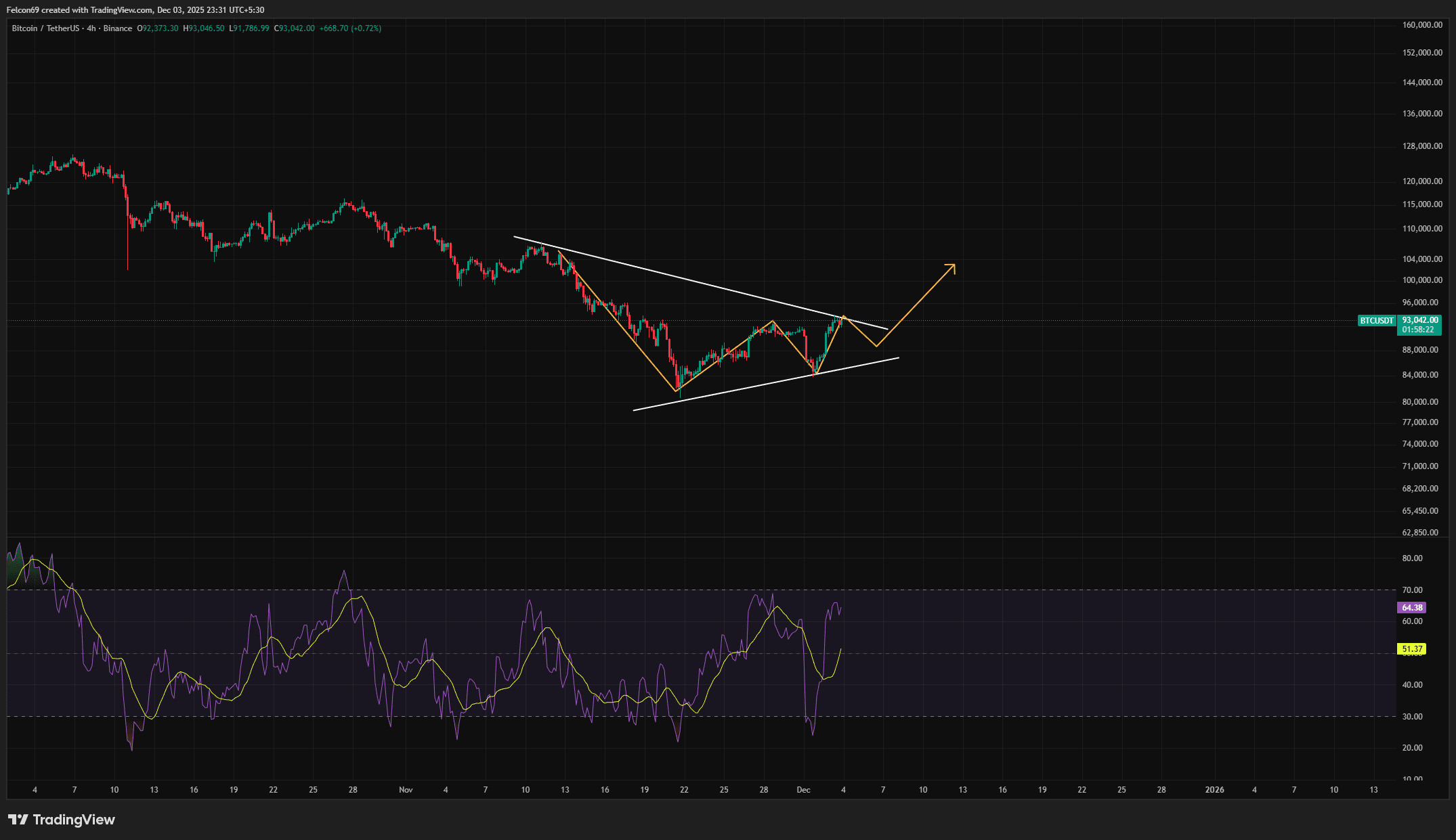Vidím, že BTC naznačuje potenciální průlom v obou směrech. Červený medvědí emoji naznačuje možný sestupný průlom (pokračování předchozího poklesu nebo medvědí obrat), zatímco zelený býčí emoji naznačuje možný vzestupný průlom (pokračování předchozího vzestupu nebo býčí obrat).