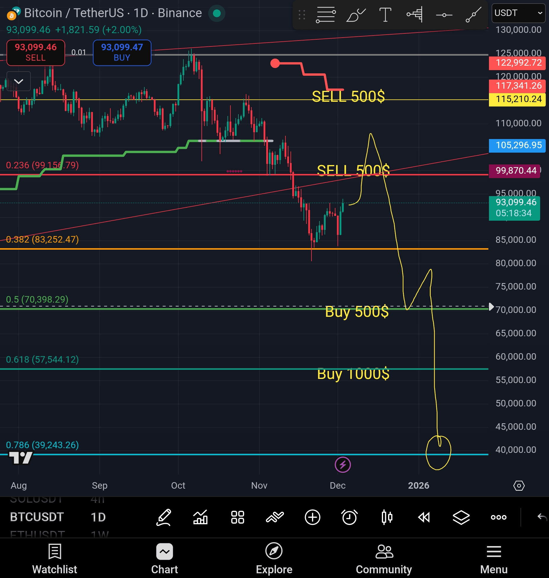 Bitcoin se rychle nezhroutí. Skutečný propad bude mít stále téměř 11 měsíců před sebou. V listopadu–prosinci 2026 je pravděpodobné, že Bitcoin vytvoří hlavní cyklické minimum někde mezi 30 000 a 40 000 dolary. To bude pravá zóna akumulace — ale do té doby většina retailových obchodníků nebude mít žádný kapitál, zatímco chytří investoři budou tiše akumulovat.