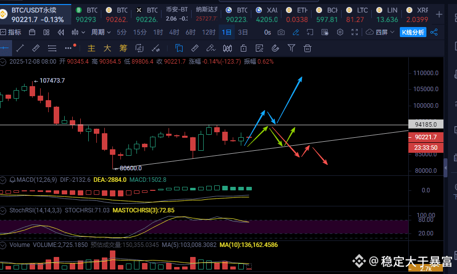 • 当前处于89500-91700美元强势震荡区间。