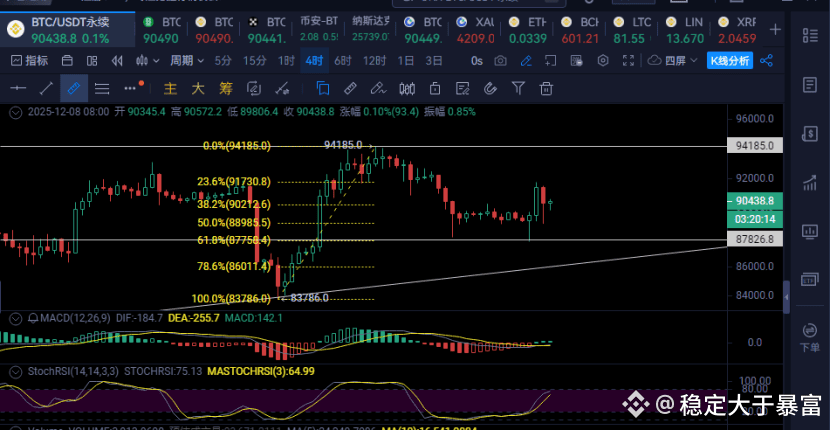 • 昨日夜间测试87750美元(对应83700-94100区间61.8%斐波那契回撤位)后反弹。