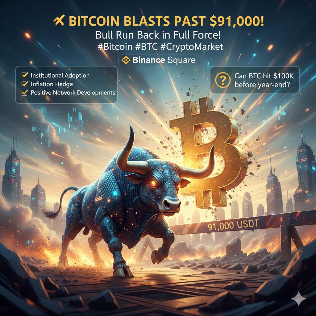 Bitcoinův průlom nad $91,000 značí významný milník poháněný institucionální důvěrou a silnými tržními fundamenty. Ať už obchodujete nebo držíte, zaměřte se na širší obraz — býčí tržní momentum se teprve začíná.