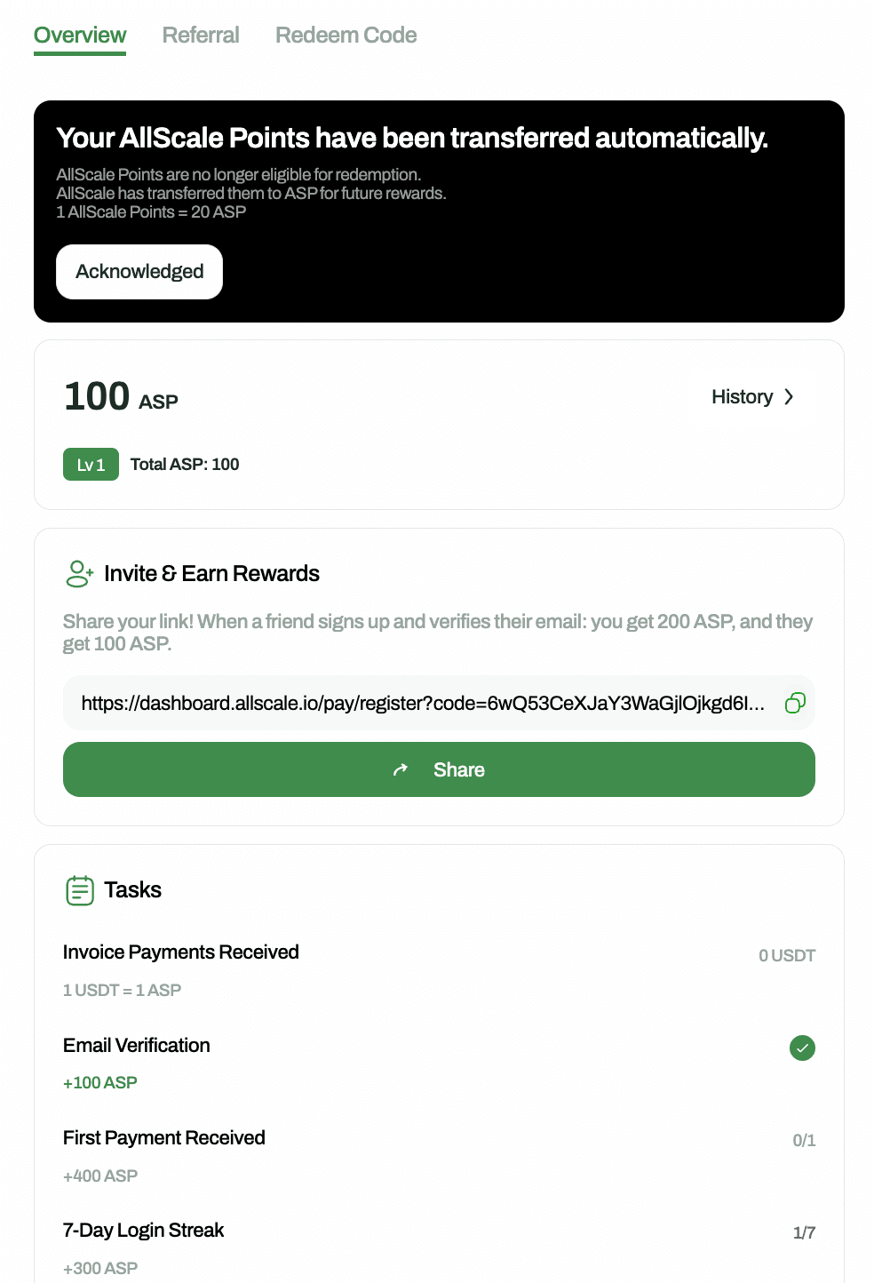 AllScale Points nyní vypadá jako „přihlášení a získání bodů“, ale ve spojení s jejich výkonem na Demo Day, kde se v Dubaji zúčastnilo nejvíce lidí (událost se konala 4. prosince), se jasně zaměřují na lehkou interakci, aby vybrali rané vysoce hodnotné uživatele.