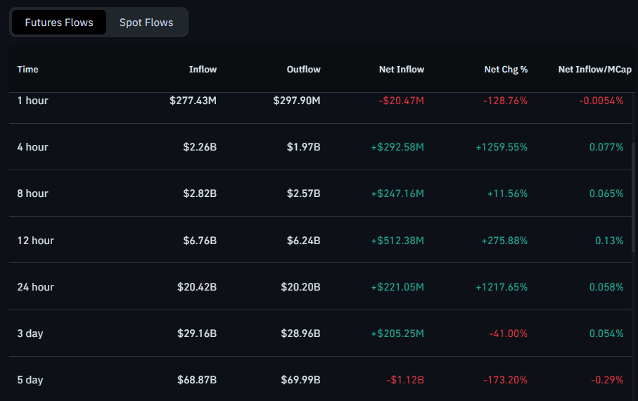 Ethereum vidí více než 500 milionů dolarů v čistých futures tocích, zaznamenávající býčí momentum, když cena testuje klíčové úrovně odporu.