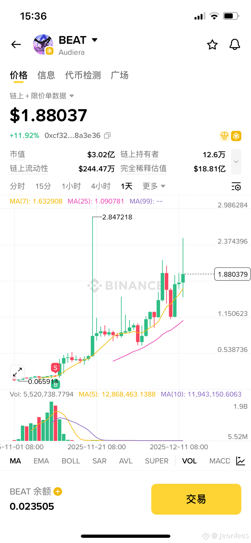 Bratři, poslední dobou je trh $BEAT opravdu působivý, objem a cena stoupají a člověk se cítí pohodlně! Když jsem na začátku vybral 50U $BEAT z akce Audiera, ráno jsem se podíval a už to šlo na 1000U, ten desetinásobný nárůst mi přímo vyrovnal všechny ty alpha mince, které jsem v listopadu držel!