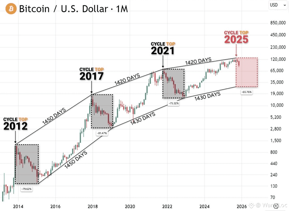 Tento graf naznačuje cyklické minimum kolem ~$25,000 v roce 2026 👀