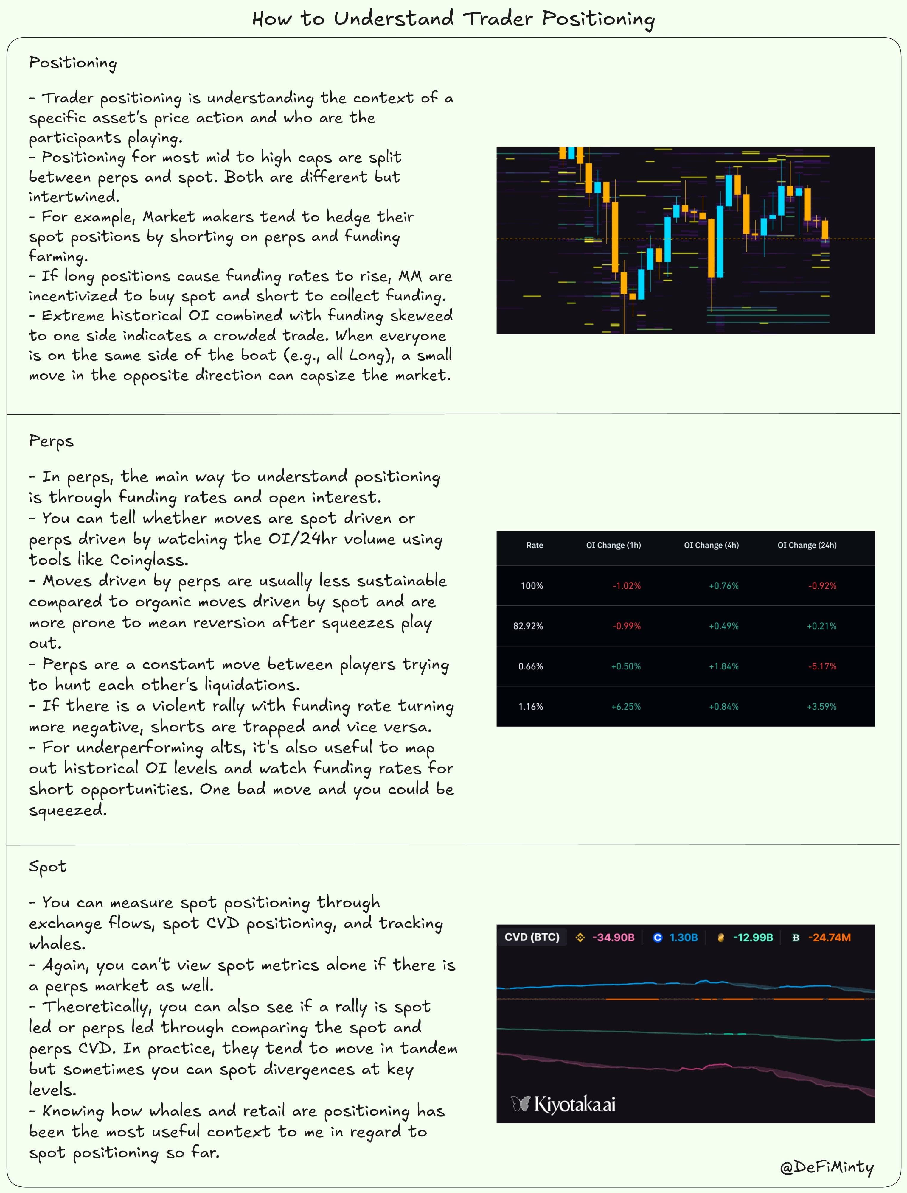 U většiny velkých a středních mincí se positioning nenachází pouze na spot trhu (skutečná koupě/prodeje), ale také na trzích s deriváty, zejména na perpetual futures (perps). Tyto dva trhy fungují odlišně, ale mají na sebe silný vliv.