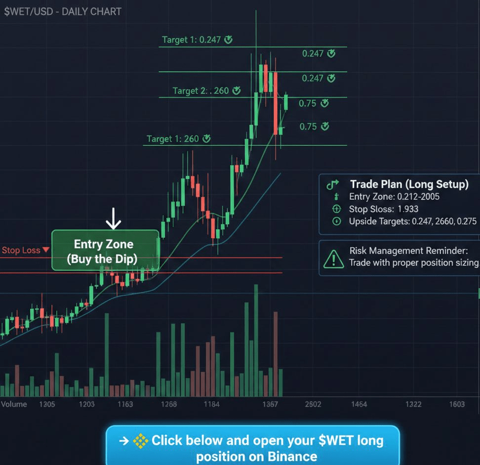 👉 Klikněte níže a otevřete svou $WET dlouhou pozici na Binance