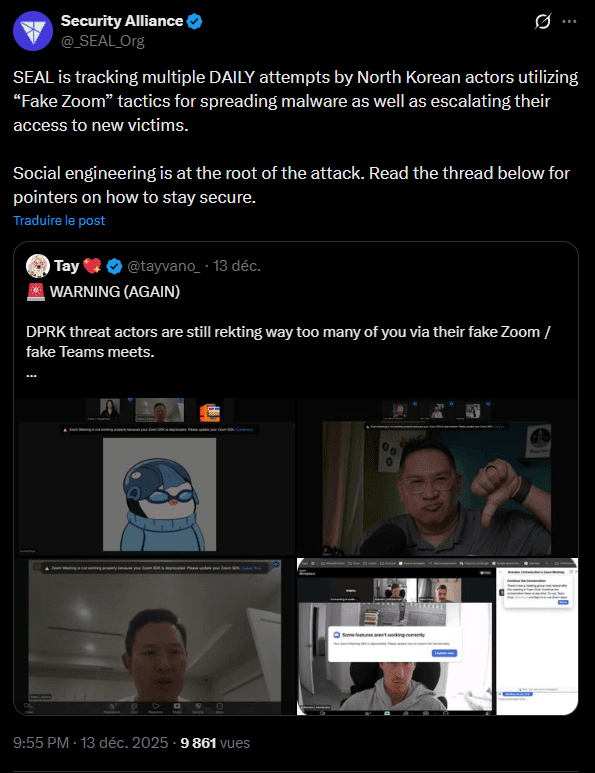 bezpečnostní aliance bije na poplach a varuje před těmito falešnými setkáními Zoom – Zdroj: Účet X