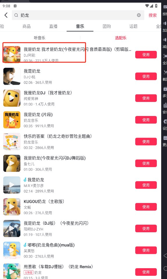 Zadejte do vyhledávacího řádku aplikace Douyin „Hakimi“, v panelu štítků vyberte „hudba“ a zobrazí se vám dva typy výsledků: hudba a hudba na pozadí. Hudbu na pozadí použijeme jako standard a vybereme 5 nejlepších výsledků: