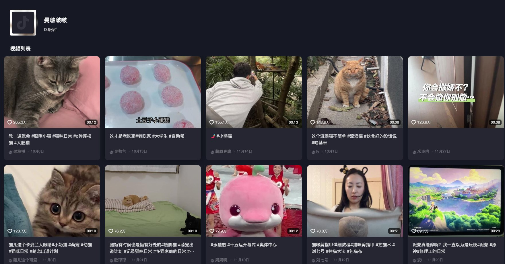Manbobobo (DJ A Zhe): 1,075 milionu uživatelů, 10 nejlepších krátkých videí s hudbou na pozadí od Hakimi má celkem 12,99 milionu lajků.