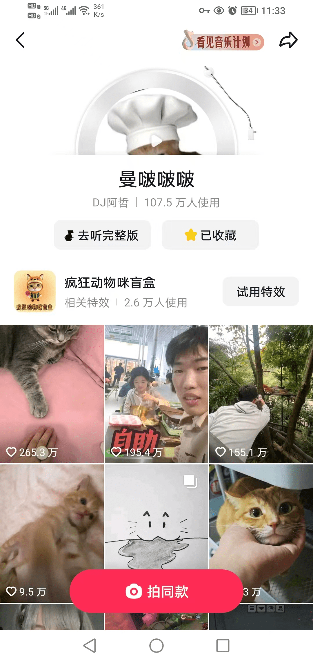 Je široce používán na Douyin a Bilibili v roztomilých videích s domácími mazlíčky, abstraktních tancích, videích s krysami a svérázných klipech, s explozivním šířením, které je nemožné plně sledovat.