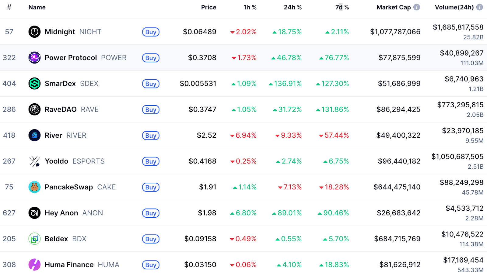 Odrážením posledních týdnů byly opět nejlepšími výkonnými tituly menší kryptoměny. Největší vítězové tohoto týdne a jejich katalyzátory (kde jsou známy) zahrnují: