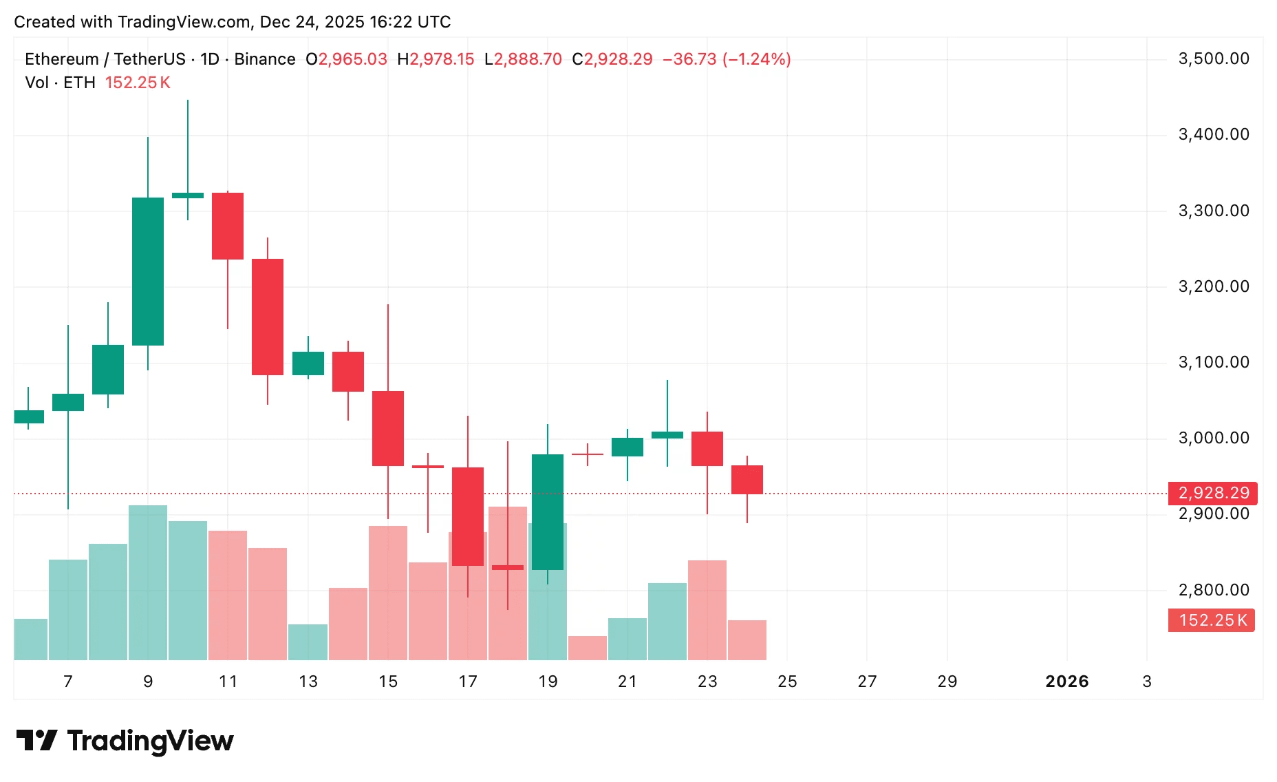 Pokud cena ETH nedokáže překonat 3 000–3 200 $, další poklesy jsou možné, přičemž 2 600 $ funguje jako další hlavní podpora.