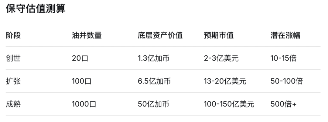 Fáze vývoje: Projekt plánoval jasné tři fáze - fáze stvoření (20 ropných vrtů), fáze obměny (100 ropných vrtů), věčná fáze (1000 ropných vrtů a energetická veřejná blockchain), konečným cílem je stát se základní infrastrukturou globální digitální ekonomiky energie.