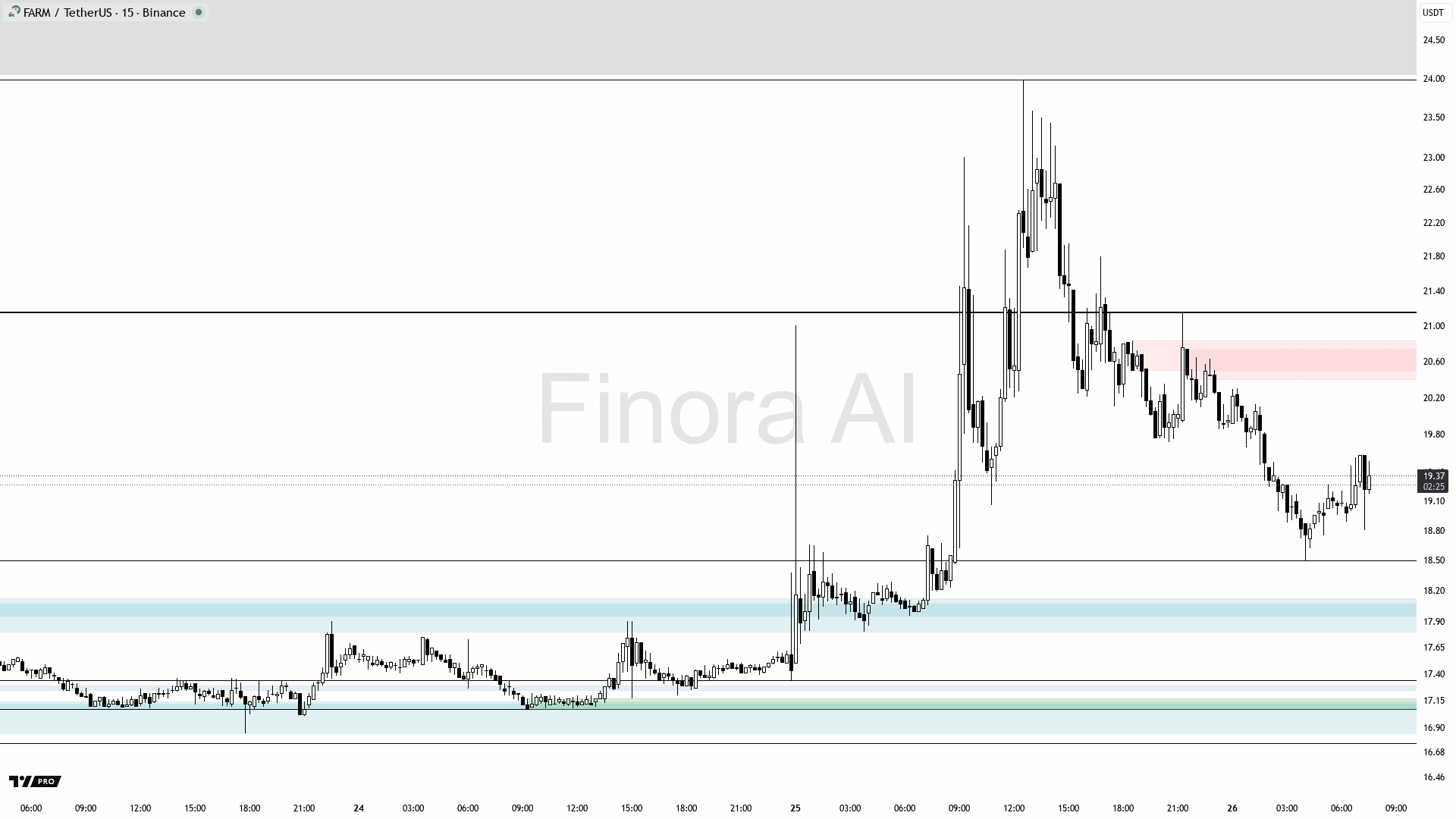 - V současnosti očekávám, že FARMUSDT vzroste v krátkém období, s pravděpodobností opakovaného testování odporu 20,43 a možným dalším pohybem směrem k oblasti 21,16–21,68, pokud se impuls bude udržovat.