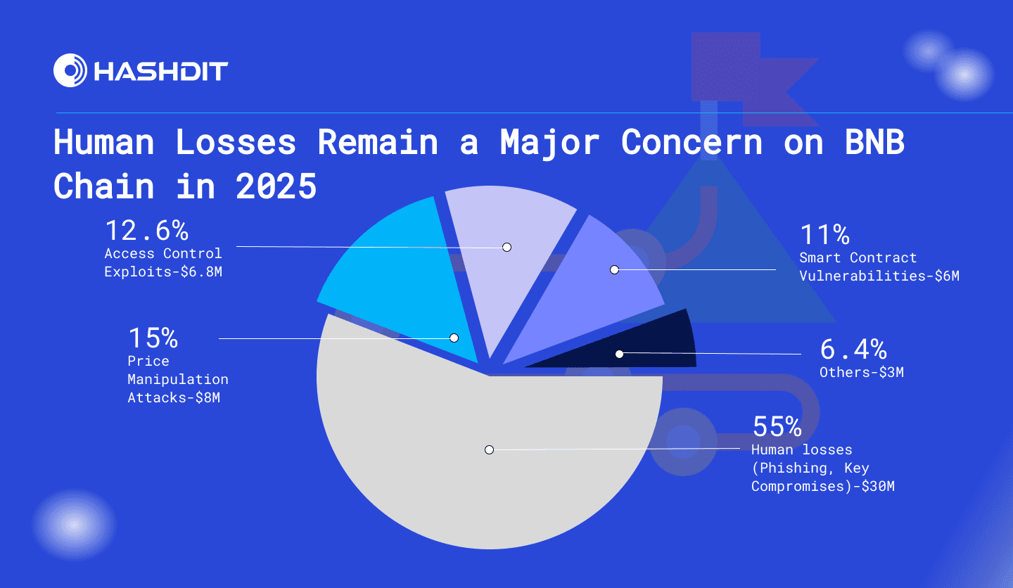 I když se celkové obranné mechanismy řetězce posílily a celkové ztráty pokračovaly v několikaletém poklesu v roce 2025, jedna tvrdohlavá pravda přetrvávala: většina fondů ztracených na BNB Chain zmizela nejen z komplikovaných exploitů smluv, ale z hluboce lidských okamžiků: kdy vzrušení, chamtivost nebo prostá spěch překonaly opatrnost.