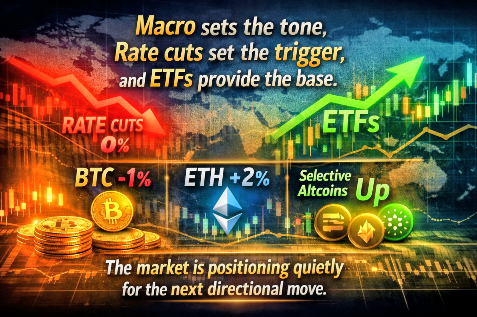 Jde o trh zaměřený na pozici, nikoli na honění. Chytrá peněžní síla se zdá soustředit na akumulaci, správu rizik a přípravu na další trend, nikoli na krátkodobé spekulace. Makro určuje ton, snížení úroků je spouštěčem a ETF poskytují základ. S BTC −1 %, ETH +2 % a vybranými altcoiny, které výrazně předčí, trh tajně pozice pro další směrový pohyb.