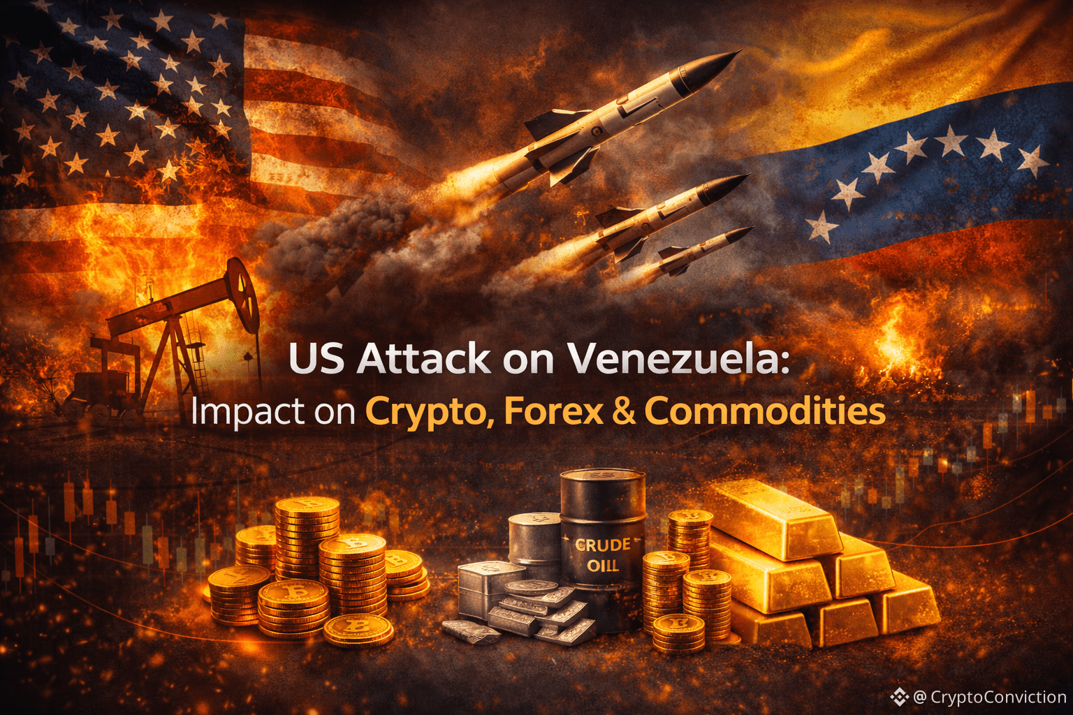 Any direct military action or severe escalation between the United States and Venezuela would be a high-impact geopolitical event. Even limited strikes or blockades in Venezuela — a major oil-producing nation — would immediately ripple through energy markets, safe-haven assets, currencies, and crypto.