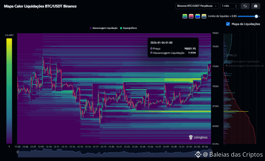 JANEIRO DE 2026: Eu apostaria na venda de altcoins, devido a possibilidade de buscarmos 226 milhões de liquidez no Bitcoin até os 86k, na Binance.