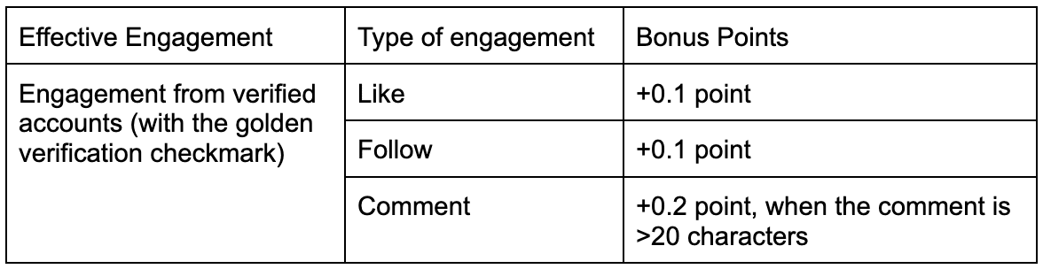 Bonusové body za sledování budou počítány pouze jednou na tvůrce, a lajky budou počítány pouze jednou na příspěvek.