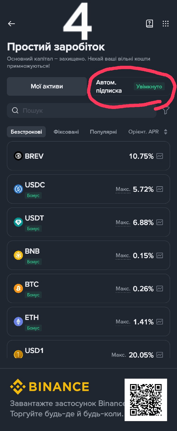To je váš osobní robot-pomocník. U každé mince v sekci Earn je přepínač „Automatická předplatné“.