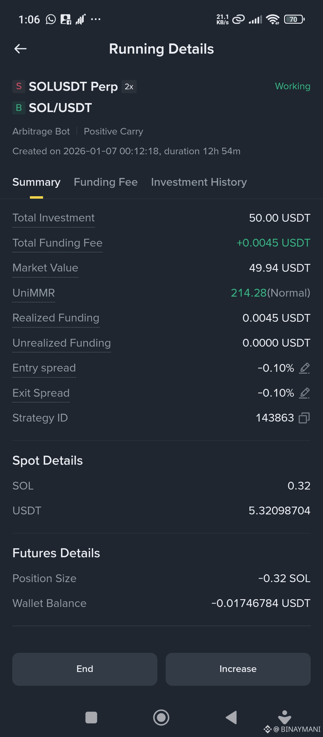 Rebalancing: If the price moves significantly, the bot ensures the "Delta Neutral" status remains (i.e., your long and short stay equal in value).