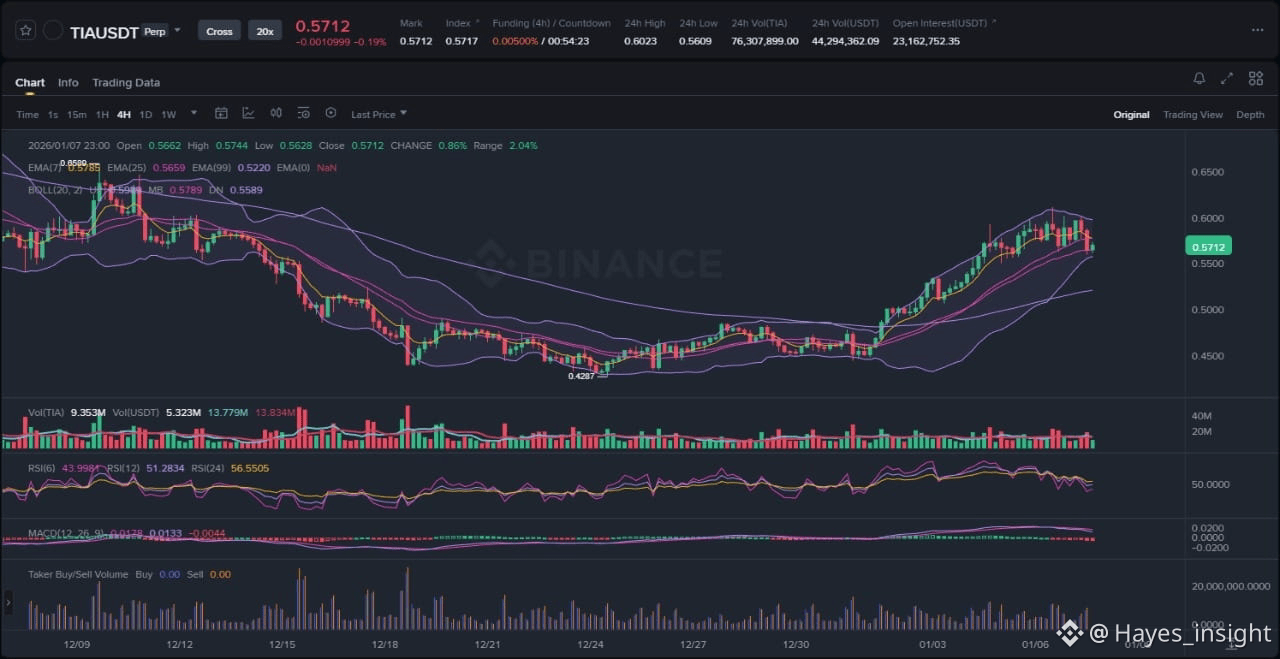 Practical takeaways for monitoring TIA include watching volume behavior for spikes on downside moves, which could confirm institutional selling; reaction at the $0.2029 key area for signs of absorption or further capitulation; and momentum shifts in RSI above 50, which might hint at short-term relief rallies. Additionally, track liquidity sweeps near Bollinger Band extremes, as these often precede volatility expansions. These elements provide neutral frameworks for observation without implying directional bets.