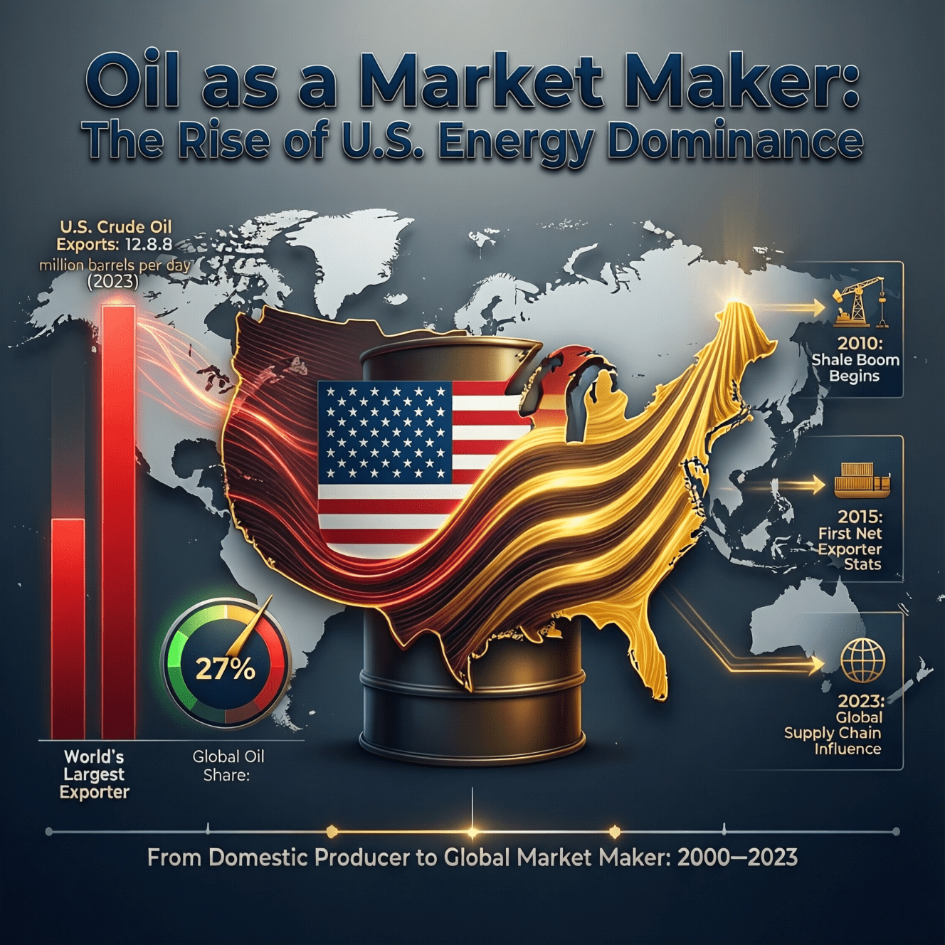 Během posledních dvou desetiletí se Spojené státy změnily zásadním způsobem své role na globálních trzích energie. Dříve byl netto dovozce závislý na dovozu ropy – zejména z Blízkého východu – a nyní se USA staly světovým lídrem v těžbě surové ropy a klíčovým "tvůrcem trhu" v globální energetické dynamice. Tento přesun byl způsoben především revolucí v těžbě štětové ropy, pokroky v technologiích těžby a strategickými politickými rozhodnutími, které přeformulovaly geopolitické aliance, globální obchodní toky a paradigmata energetické bezpečnosti.