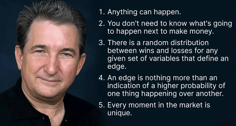 Douglas vysvětluje, že trh je podstatou nejistý. I nejlepší nastavení může selhat. Skutečné převýšení přichází z myšlení v pravděpodobnostech, nikoli předpovědí. Když jsem tomu pochopil, přestal jsem se emocionálně vázat k jednotlivým obchodům.