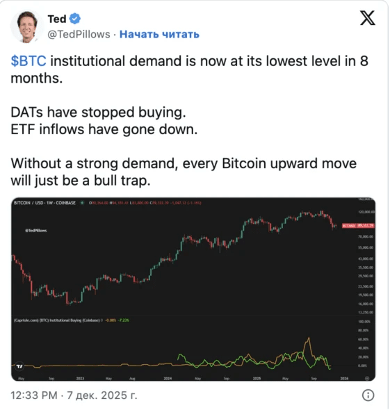 V období od roku 2024 do roku 2025 trhu pomáhaly významné přítoky kapitálu po spuštění spotových bitcoinových ETF ve Spojených státech. Dalším faktorem optimismu byla regulativní politika vlády Donalda Trumpa, která podpořila zájem o rizikové aktiva. Avšak v současné době tento mechanismus přestal působit ve prospěch růstu.