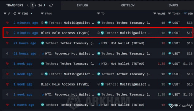 هذا يعني أن USDT تم إنشاؤه واحتُفظ به في الاحتياطي، ولم يدخل السوق فورًا. بدلاً من ذلك، يبقى جاهزًا للبورصات والشركاء الذين يحتاجون إلى سيولة. عادةً ما تتبع تيثِر هذا الأسلوب لتتمكن من الاستجابة بسرعة عند ارتفاع الطلب. ببساطة، تيثِر قامت بتخزين مخزونها من العملات المستقرة.