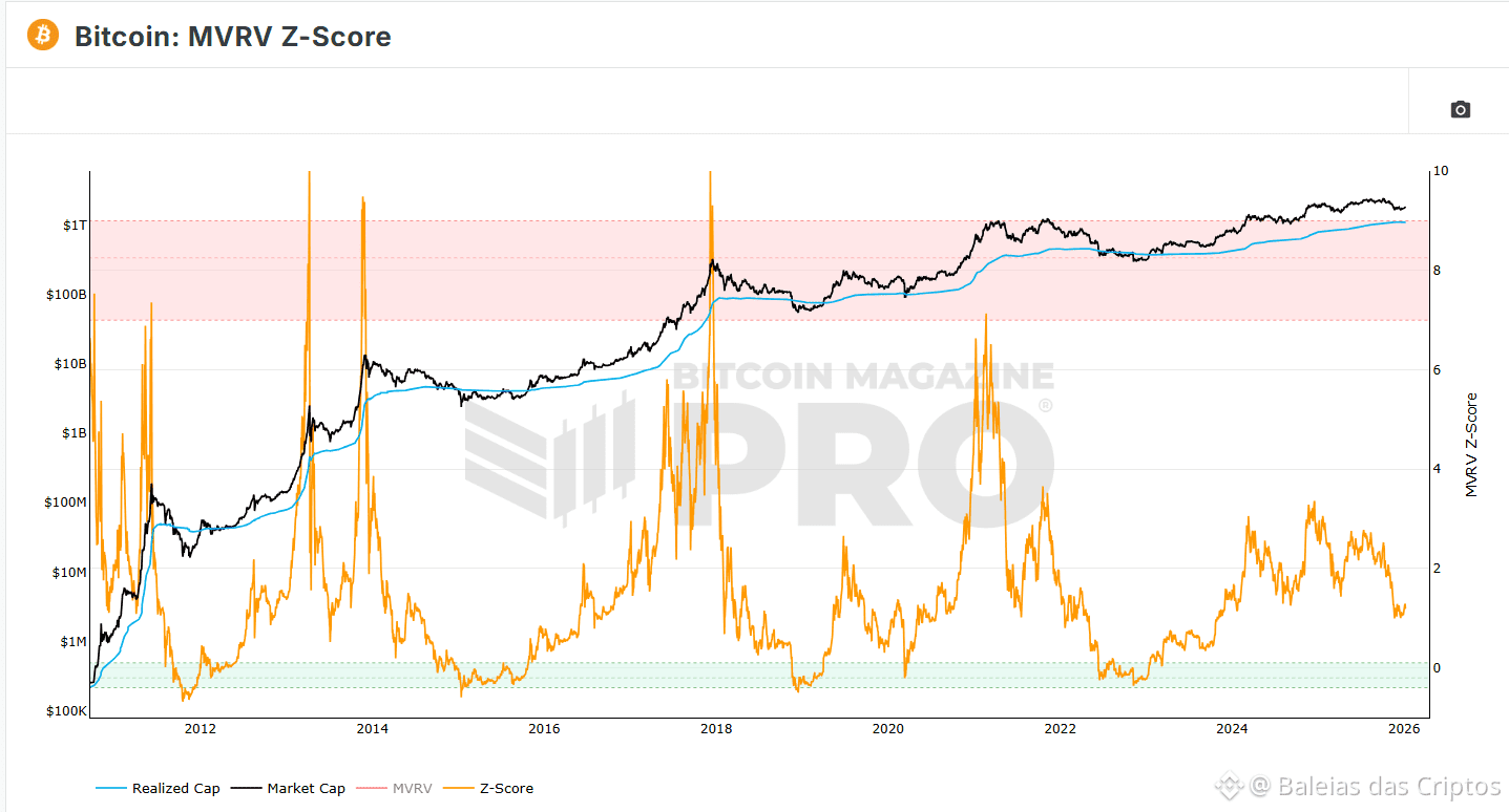 O MVRV Z-Score, uma das métricas on-chain mais respeitadas, compara o valor de mercado com o valor realizado (preço médio pago pelos investidores).