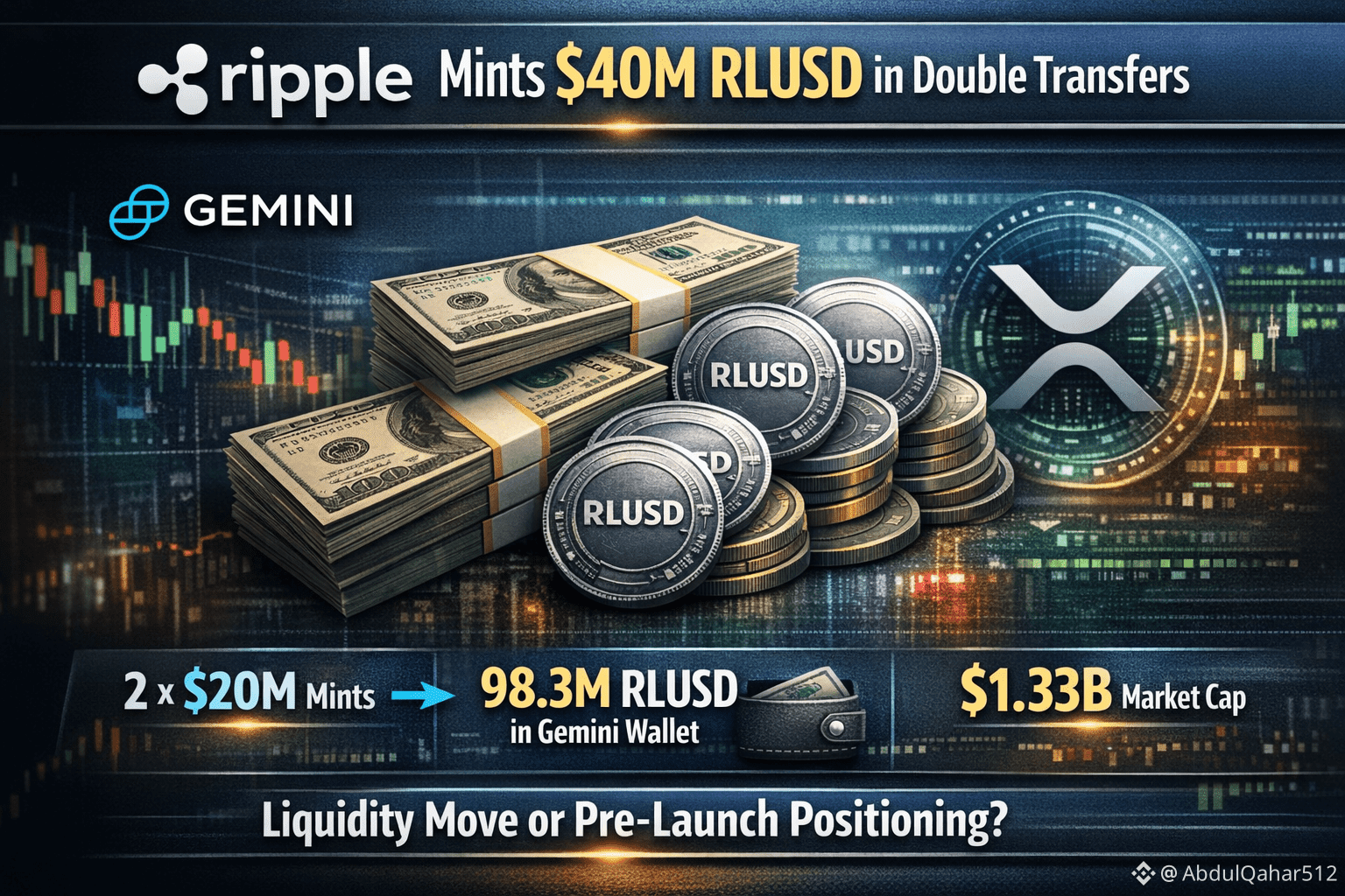 Ripple’s stablecoin division has minted an $ETH additional $40 million worth of RLUSD, released in two consecutive transactions of $20 million each, according to on-chain data. Both transactions originated from the RLUSD Treasury and were sent to a Gemini-linked wallet, one of the largest regulated crypto exchanges in the United States.#USNonFarmPayrollReport