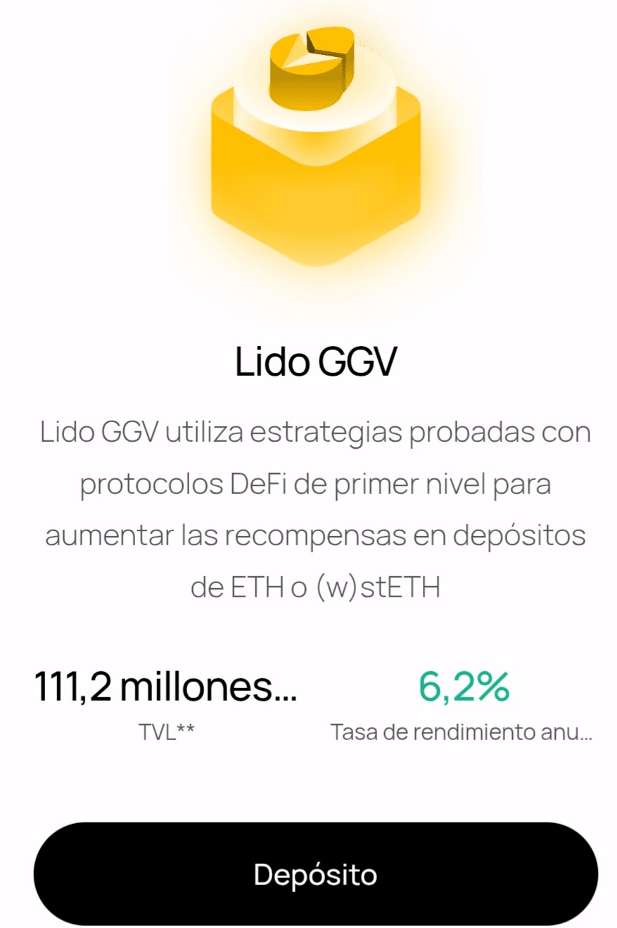 4. Una vez ralizado, voy a recibir stETH que viene a ser una representación de mis Eth casi del mismo valor y luego voy a usar estos para ponerlos en otra estrategia que es Lido GGV