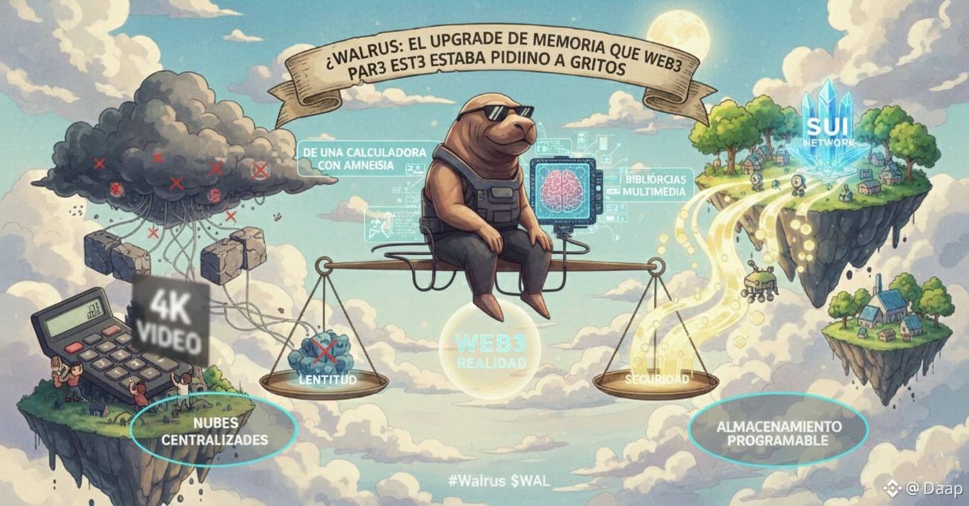 Siendo honestos, las blockchains actuales son como calculadoras superpotentes pero con una memoria de pez. Ethereum o Sui pueden mover millones de dólares en segundos, pero diles que guarden un video en 4K y se quedan tiesas.