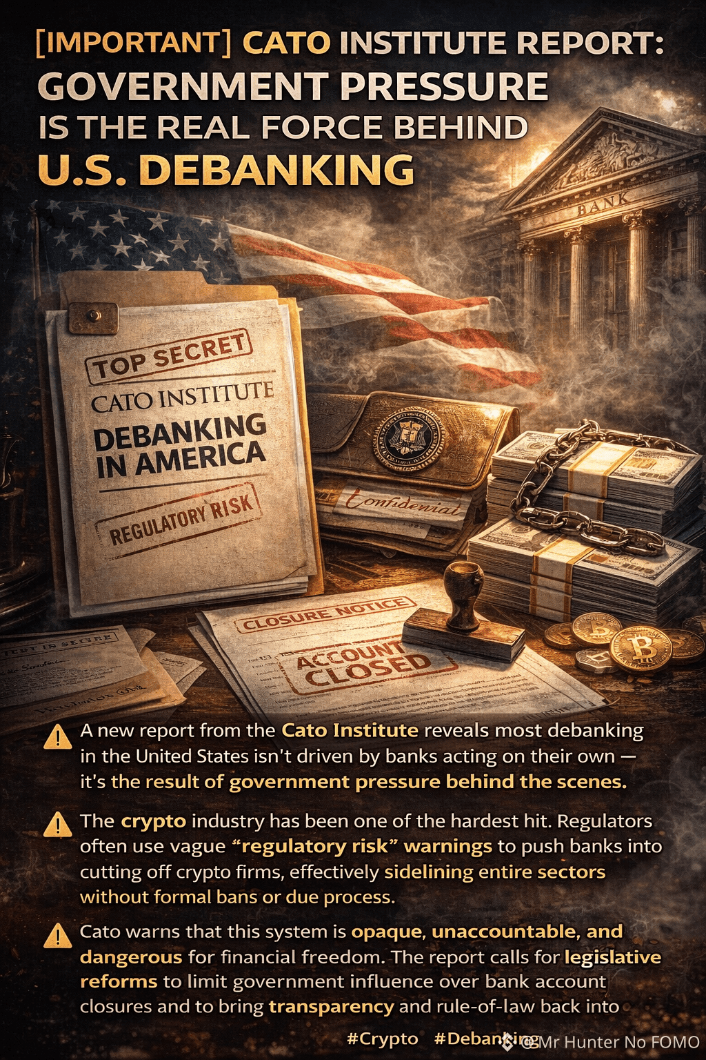 Cato’s takeaway is blunt: the current system is opaque and unaccountable. The report calls for legislative reforms to curb government influence over account closures and to add transparency around why banking access is being cut off.