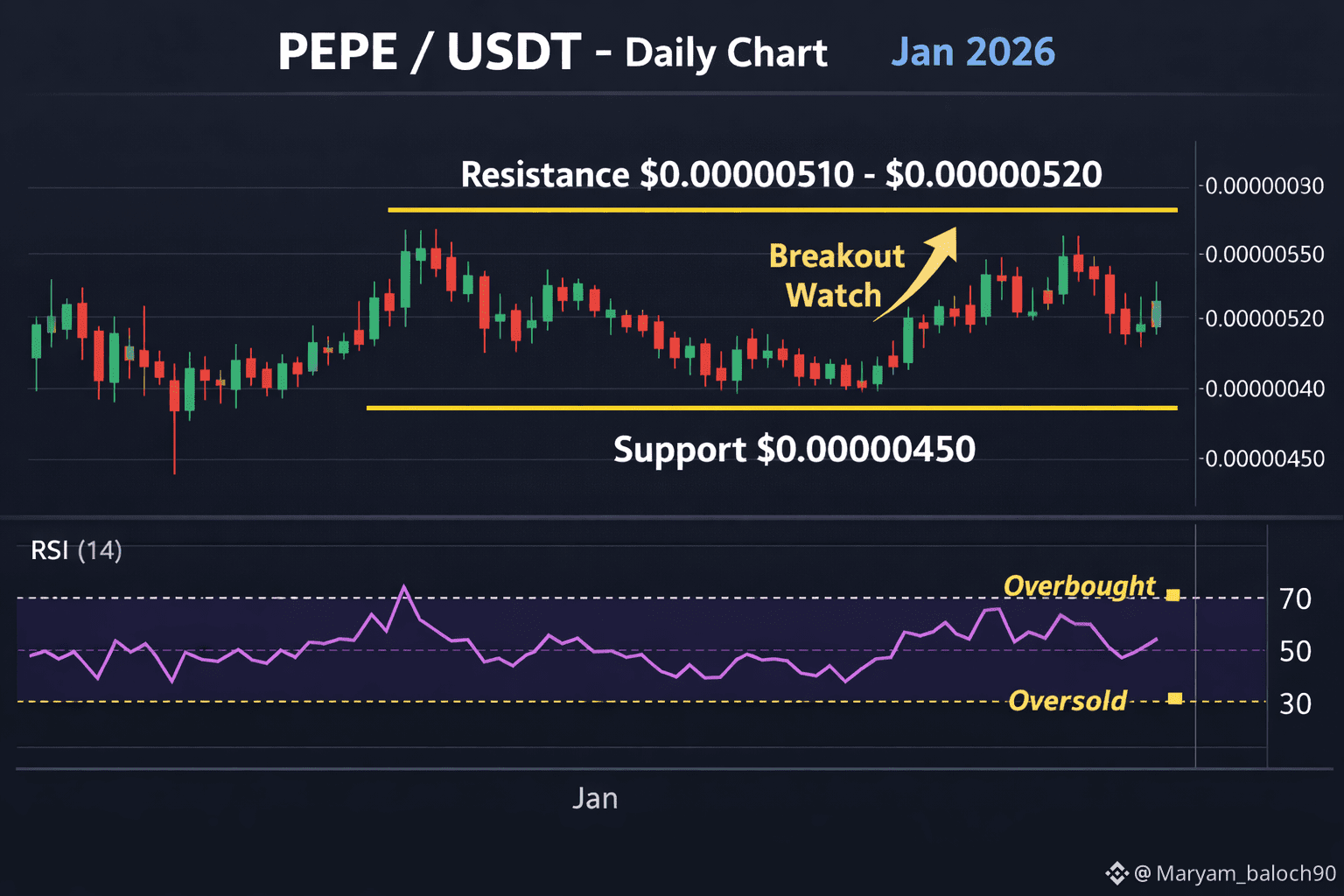 $PEPE Pepe Coin has shown continued volatility recently, with prices trading in a tight range as meme-coin speculation remains high but cautious. After bouncing off support near $0.00000450, $PEPE has tried multiple times to break above resistance around $0.00000510–$0.00000520, but sellers have kept pressure in that zone.