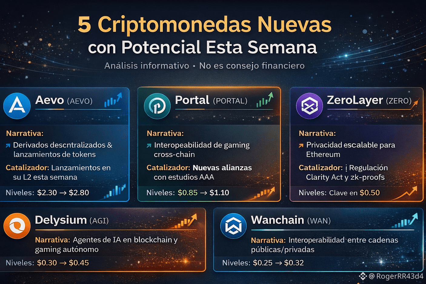 Como siempre, recordemos: esto es un análisis informativo, no una recomendación de inversión. El mercado cripto es volátil y requiere estudio personal (DYOR) y gestión de riesgo. Dicho esto, aquí te presentamos 5 proyectos relativamente nuevos o de reciente impulso que, por sus fundamentales o catalizadores cercanos, podrían mostrar un desempeño positivo esta semana.
